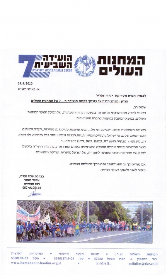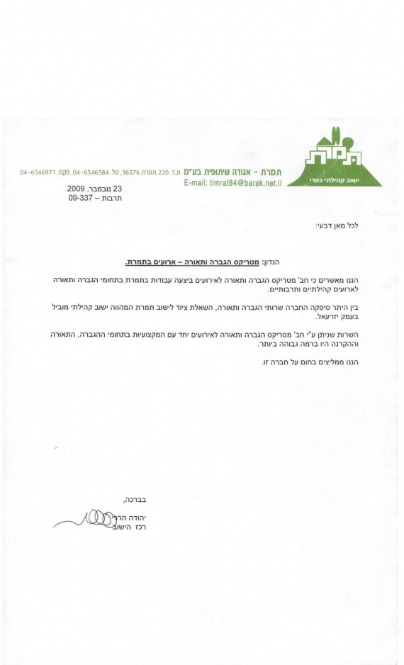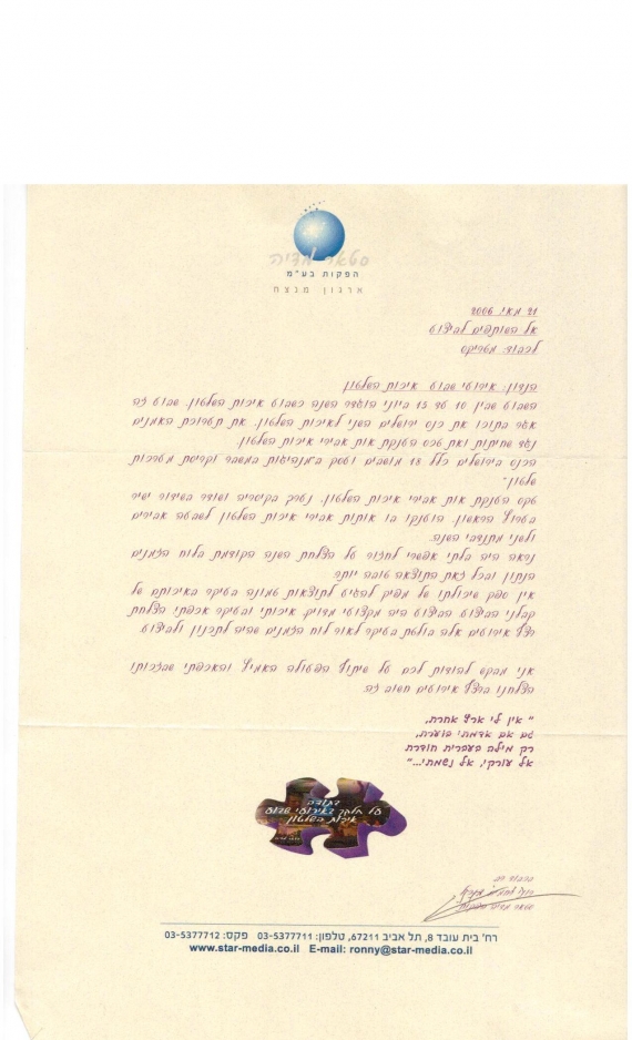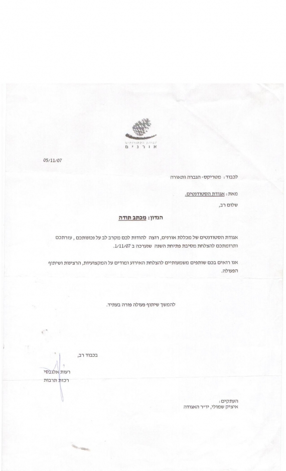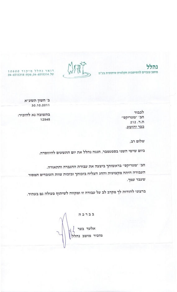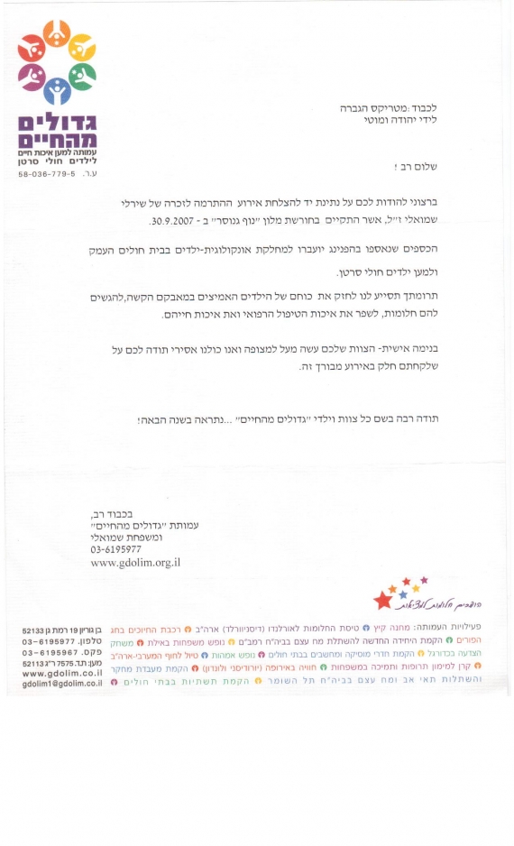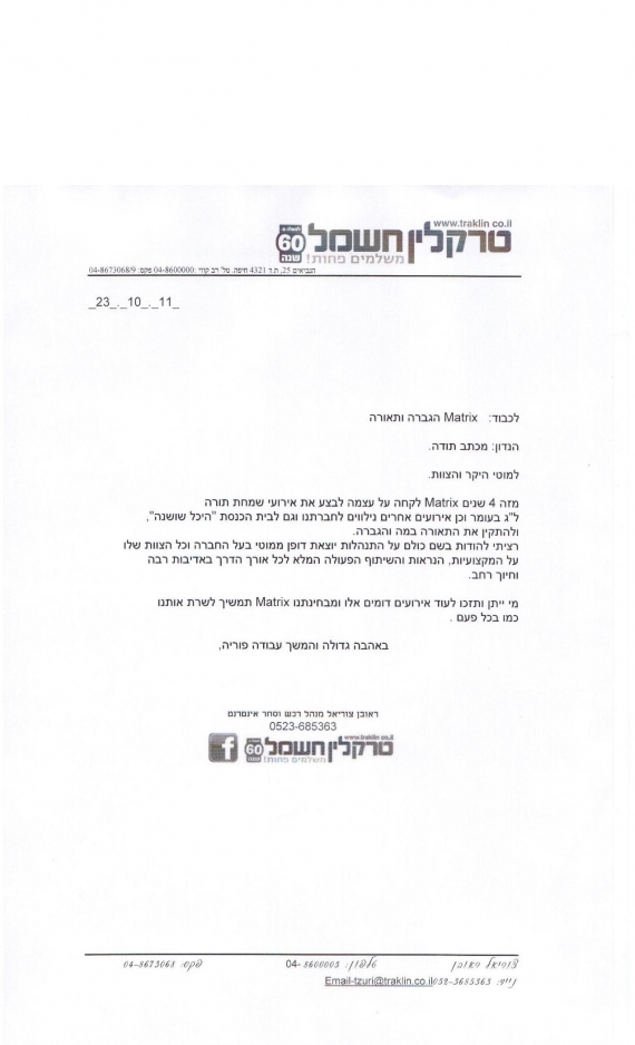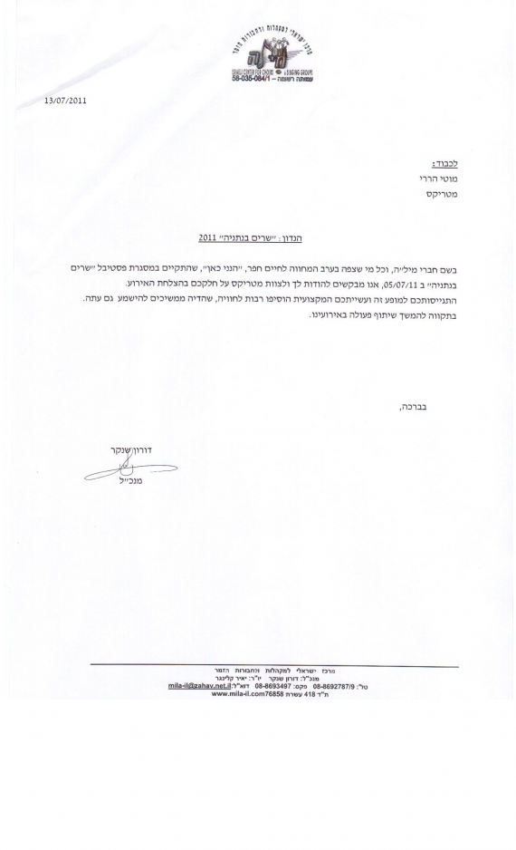 מכתבי תודה לחברת מטריקס הגברה ותאורה: